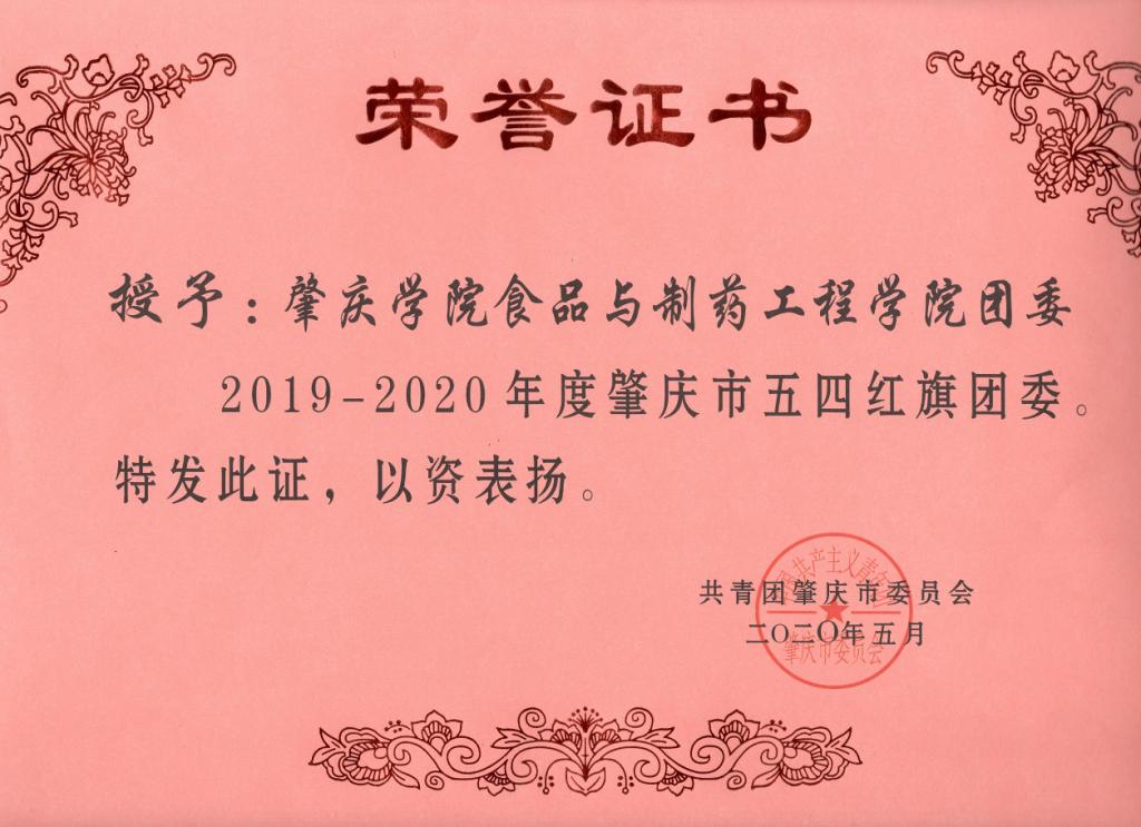 近日,由共青团肇庆市委员会组织开展的“肇庆市2019-2020年度共青团工作优秀个人和先进集体”评选活动结果揭晓,在公司团委和公司党委的领导和支持下,公司团委在全市各行各业团组织的激烈竞选中脱颖而出,获得“2019-2020年度肇庆市五四红旗团委”荣誉称号,成为端州区获此荣誉的两所单位之一,也是公司唯一获此殊荣的单位。
