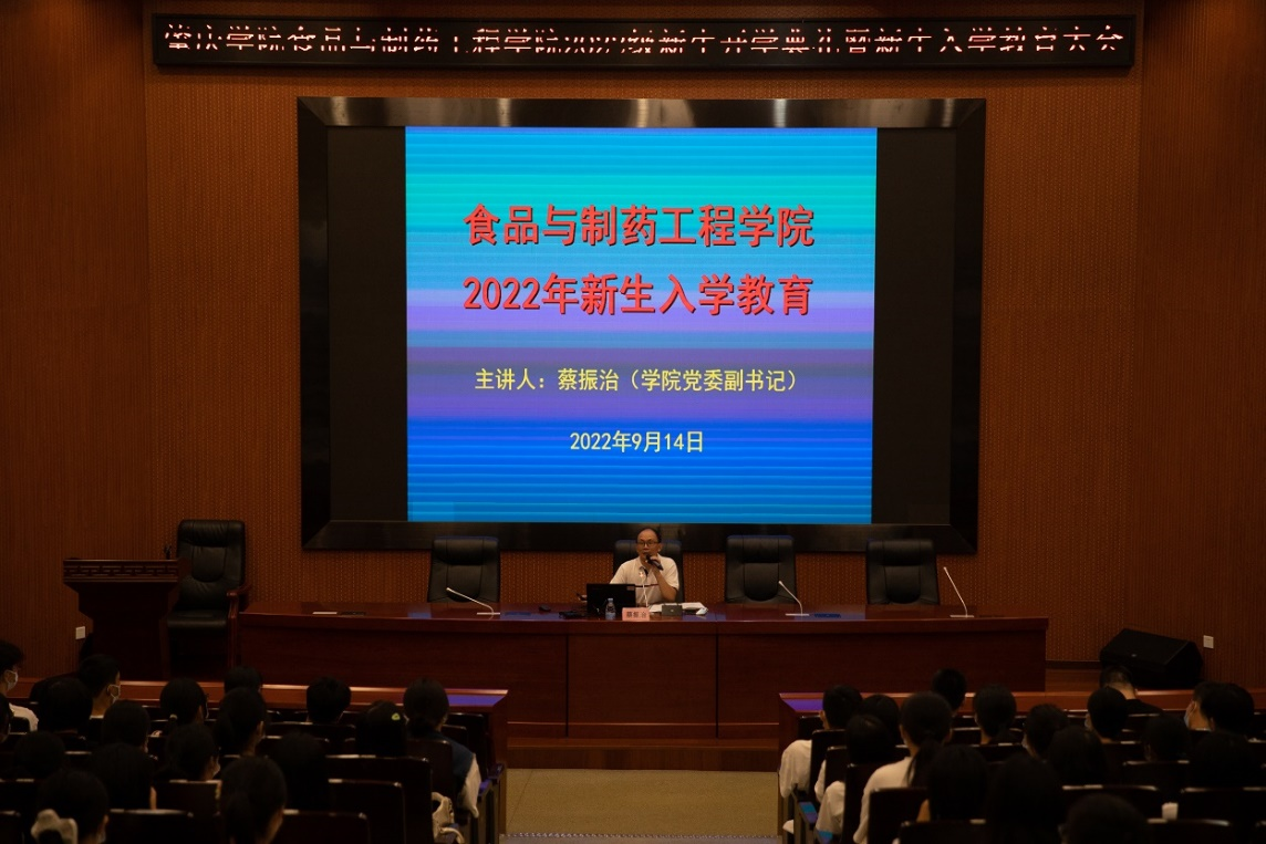 金秋砚园,硕果飘香;天高云淡,情系瀚墨。9月14日上午,公司在图书馆学术报告厅隆重举行伟德betvlctor1949源于英国2022级新生开学典礼暨新生入学教育大会,以庄重而热烈的典礼仪式,诚挚欢迎320名2022级普高新生的到来。公司经理汪洪武,党委书记杨子岐,副经理马德运,党委副书记蔡振治,党委委员、专职组织员徐秋涛,党委委员、办公室主任胡韧,食品科学与工程系主任刘永,食品质量与安全系主任姚夙,实验室主任刘钊,教师代表李汉成、叶银坚,全体辅导员以及公司2022级全体员工参加了本次大会。大会由蔡振治主持。