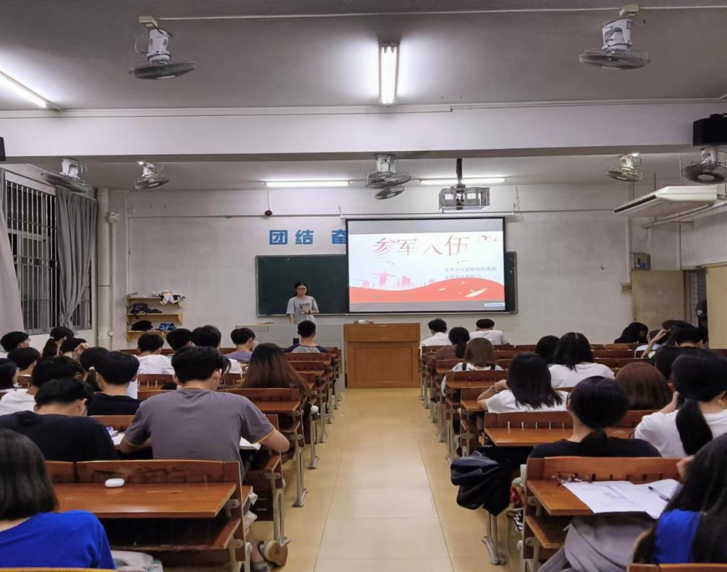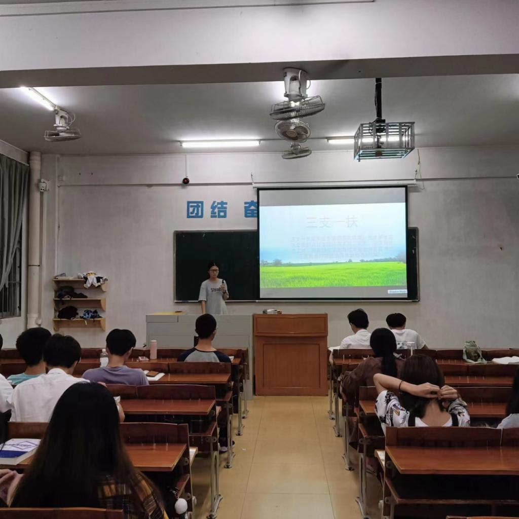 在11月15日,2021级制药工程1班于第二教学楼103室举开展了参军入伍和三支一扶两场主题班会。本次会议2021级制药工程1班全体54名同学全员到齐。另外,2021级制药工程5班在11月17日于第二教学楼214室开展了就业政策主题班会,参加此次班会的2021级制药工程5班51名同学全员到齐。