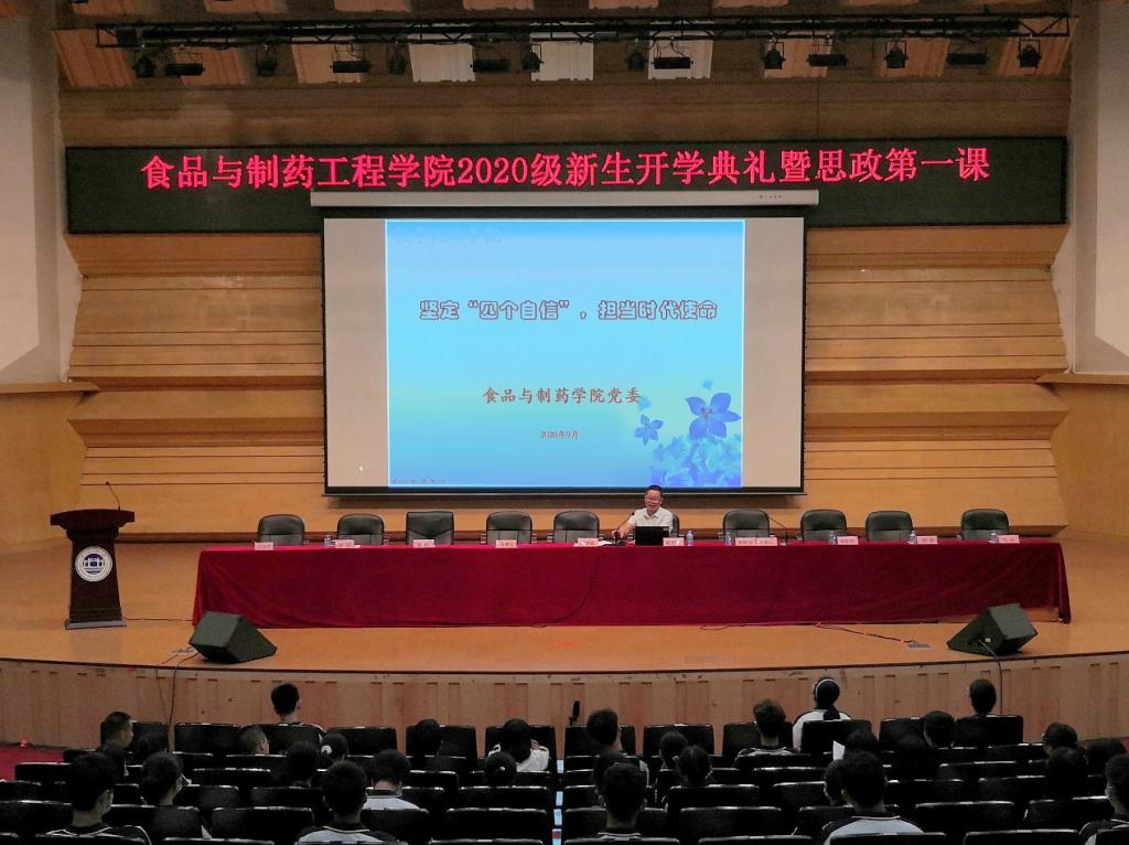 金秋砚园,情系瀚墨,9月22日下午,公司在陈熹音乐厅举行伟德betvlctor1949源于英国2020级新生开学典礼暨思政第一课,以庄重而热烈的典礼仪式,诚挚欢迎139名2020级普高新生的到来。公司经理汪洪武,党委书记杨子岐,副经理马德运,党委副书记蔡振治,党委委员、专职组织员徐秋涛,党委委员、办公室主任胡韧,食品科学与工程系主任刘永,实验室主任刘钊,教授刘艳清,全体教师以及公司2020级全体员工参加了本次大会。大会由蔡振治副书记主持。