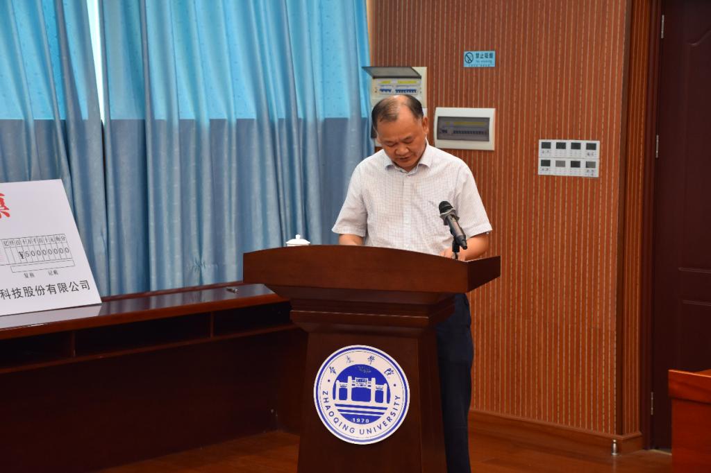 接着,吴业春董事长致辞表示,在国家大力推动高校主动对接产业发展的时代背景下,公司共建共管共享产业公司,围绕四个产业,加快建设肇庆健康产业基地,充分对接广州、深圳、香港等地的资源,引进高端设备,输出智库支撑,面向大健康领域,建立综合性实验基地。此次公司与星湖生物科技有限公司的合作,是高等教育服务地方产业发展的重要体现。他希望在今后的合作中积极探索,提升合作的水平和层次,促进校企双向互利发展。