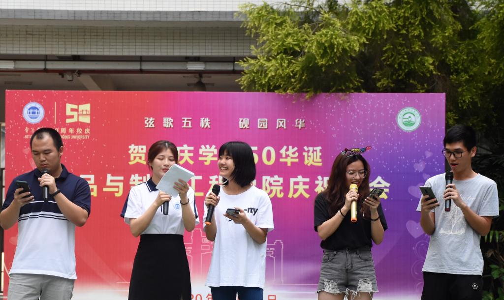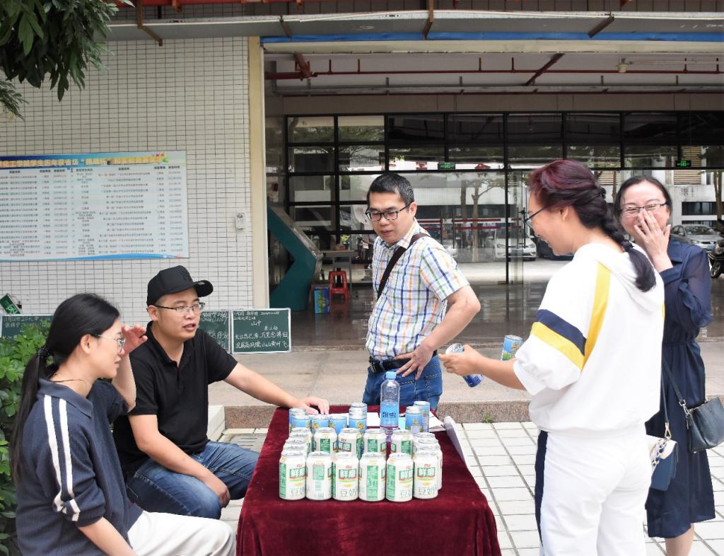当天早上8:00,师生们开始布置场地,大家细心准备、精心装点,营造出浓厚的喜庆氛围。公司团委、员工会、律委会、健促会以及易班五老员工机构分别布置各自的活动摊位,并根据自身特色设计了丰富多彩的互动游戏。活动于9:30正式开始,共计吸引了数百在校师生参与现场游戏比拼互动。师生共贺校庆,共享欢乐,用自己的方式表达对砚园50华诞的喜悦之情和美好祝愿。部分回校员工亦兴致勃勃地参与到游园活动之中,回味着员工时代的欢声笑语和美好往事。与此同时,由员工企业广东隐雪集团提供的鲜磨豆奶、广东新朝阳食品饮料有限公司提供的生榨椰子汁,以及公司精心制作的布丁、蛋糕等饮料和美食,为现场增添了更多的喜悦气氛。11:00,由员工会组织的朗诵和歌唱表演将现场气氛推向了高潮。最后,游园庆祝会在《小幸运》大合唱中圆满结束。