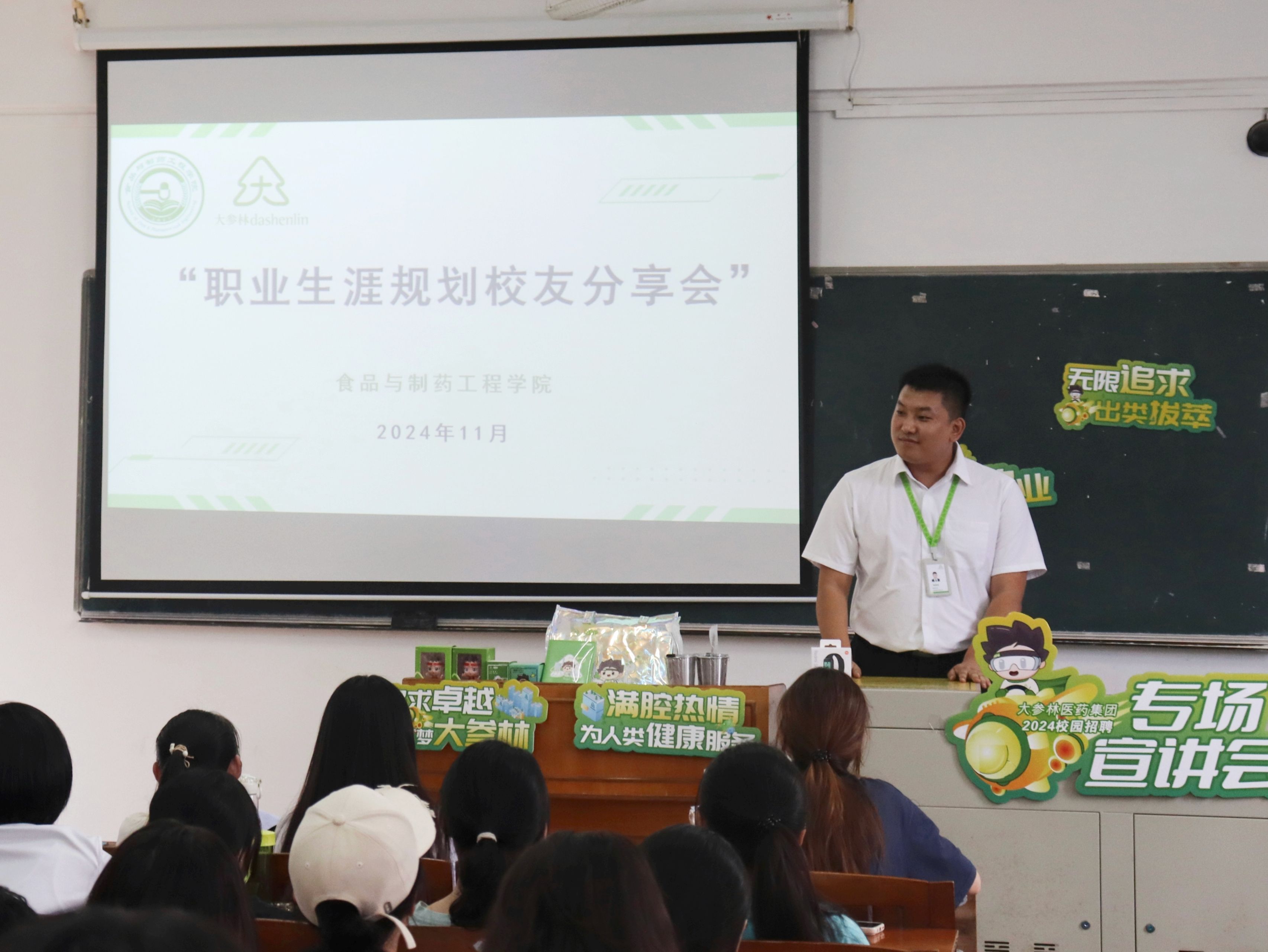 在分享会上,陈超琦以其深厚的行业洞察力和丰富的工作经验,为在场学子深入剖析了当前医药行业的就业形势。他强调,医药行业作为关乎民生福祉的关键领域,其发展潜力巨大,对高素质专业人才的需求持续增长。同时,陈超琦还结合自身经历,向同学们传递了“能吃苦,肯奋斗”的宝贵精神。他鼓励大家要脚踏实地,扎实掌握专业知识,不断提升自己的沟通能力和服务意识。他建议从基层岗位做起,通过实践积累经验,为未来职业生涯的发展奠定坚实的基础。