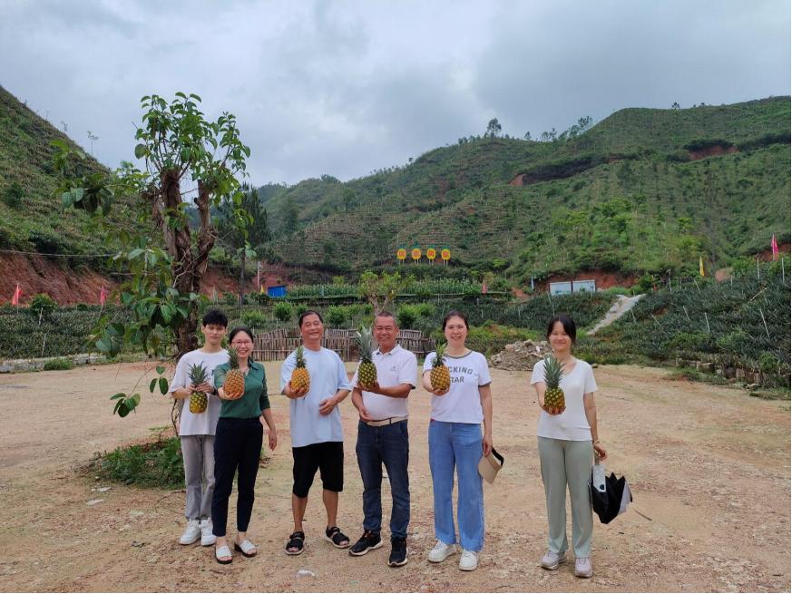 为深入贯彻落实www.betvlctor1946.com“双百工程”工作部署,进一步推动乡村振兴帮扶工作落地见效。5月19日,www.betvlctor1946.com“双百工程”驻鼎湖区服务队深入鼎湖区凤凰镇凤梨种植基地,通过实地调研、技术指导与产业规划研讨,为当地凤梨产业高质量发展注入创新活力。