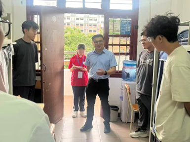为尽快帮助新生适应大学环境,林书记率全体辅导员与班主任组成慰问团队,专程深入新生宿舍开展走访慰问。每踏入一间宿舍,一行人都细致察看住宿条件与环境细节,言语间满是关切地询问新生是否适应集体生活节奏、个人行李是否已妥善安置。同时,林书记还反复叮嘱同学们务必绷紧用电安全这根弦,鼓励大家主动沟通交流,尽快与室友建立融洽的同窗情谊。领导与老师们的亲切到访,不仅让初入校园的新生们真切感受到公司与公司的温暖关怀与高度重视,更化作一股坚实的力量,坚定了他们在大学这一新起点上逐梦前行、绽放青春的信心与决心。