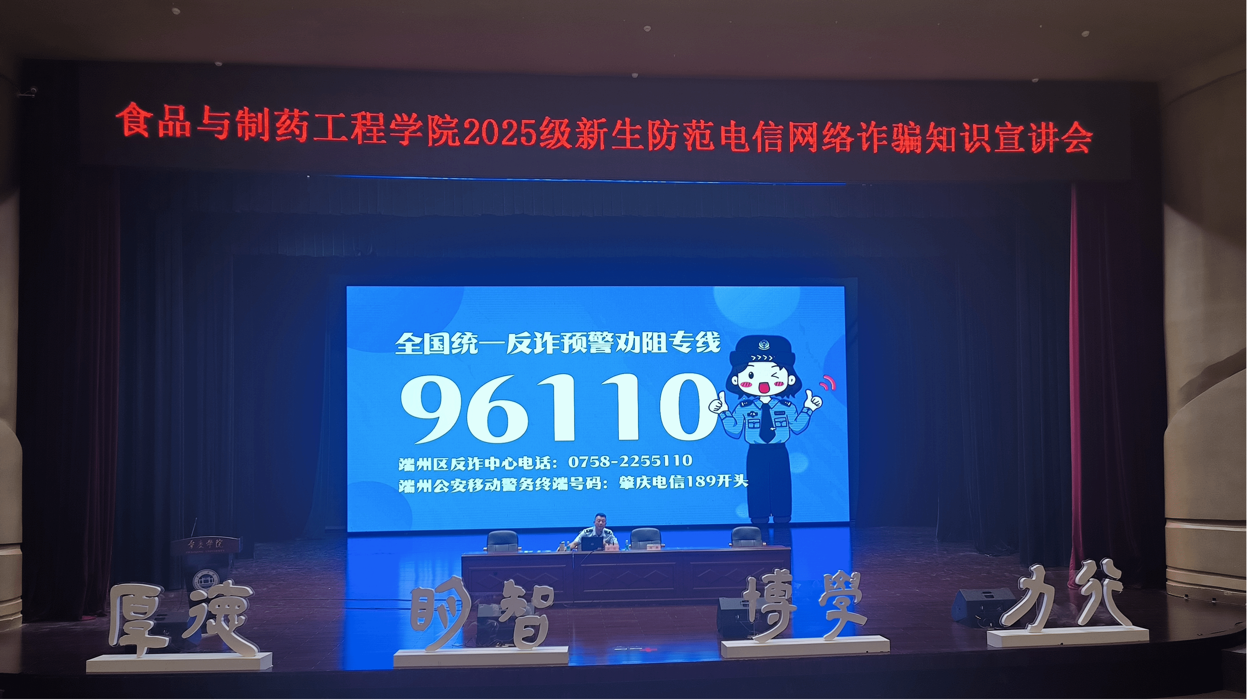 最后,梁警官提醒新生们一定要留意全国统一反诈预警劝阻专线“96110”,同时要求同学们务必下载国家反诈中心APP并打开拦截预警,最大限度的保护好自己的财产安全。