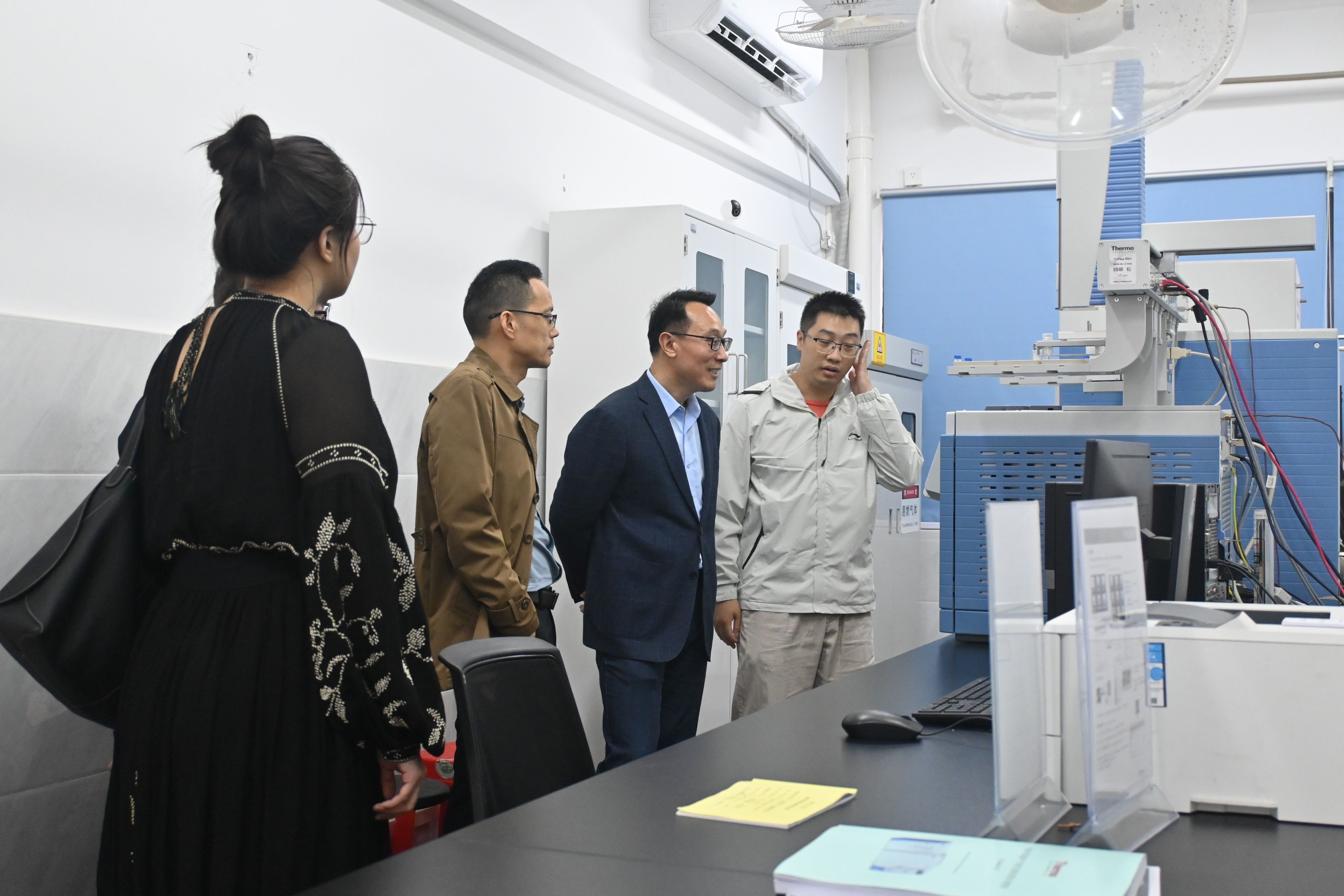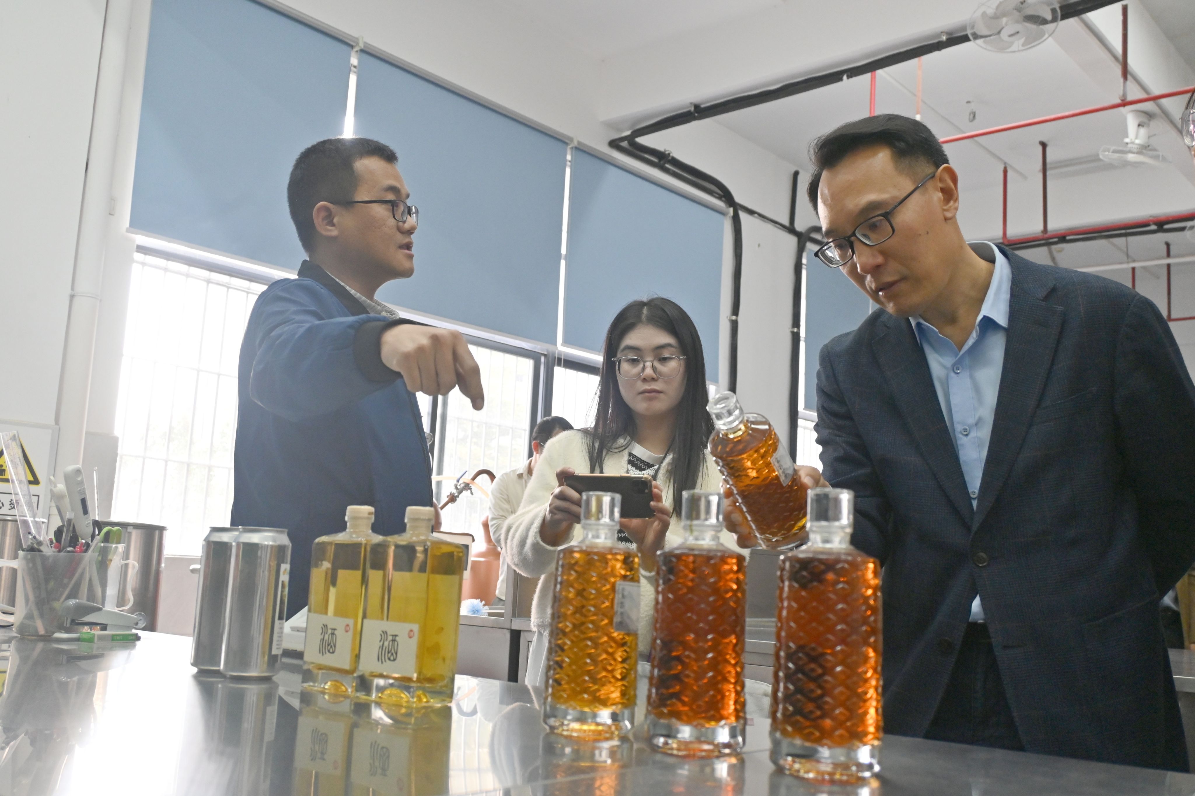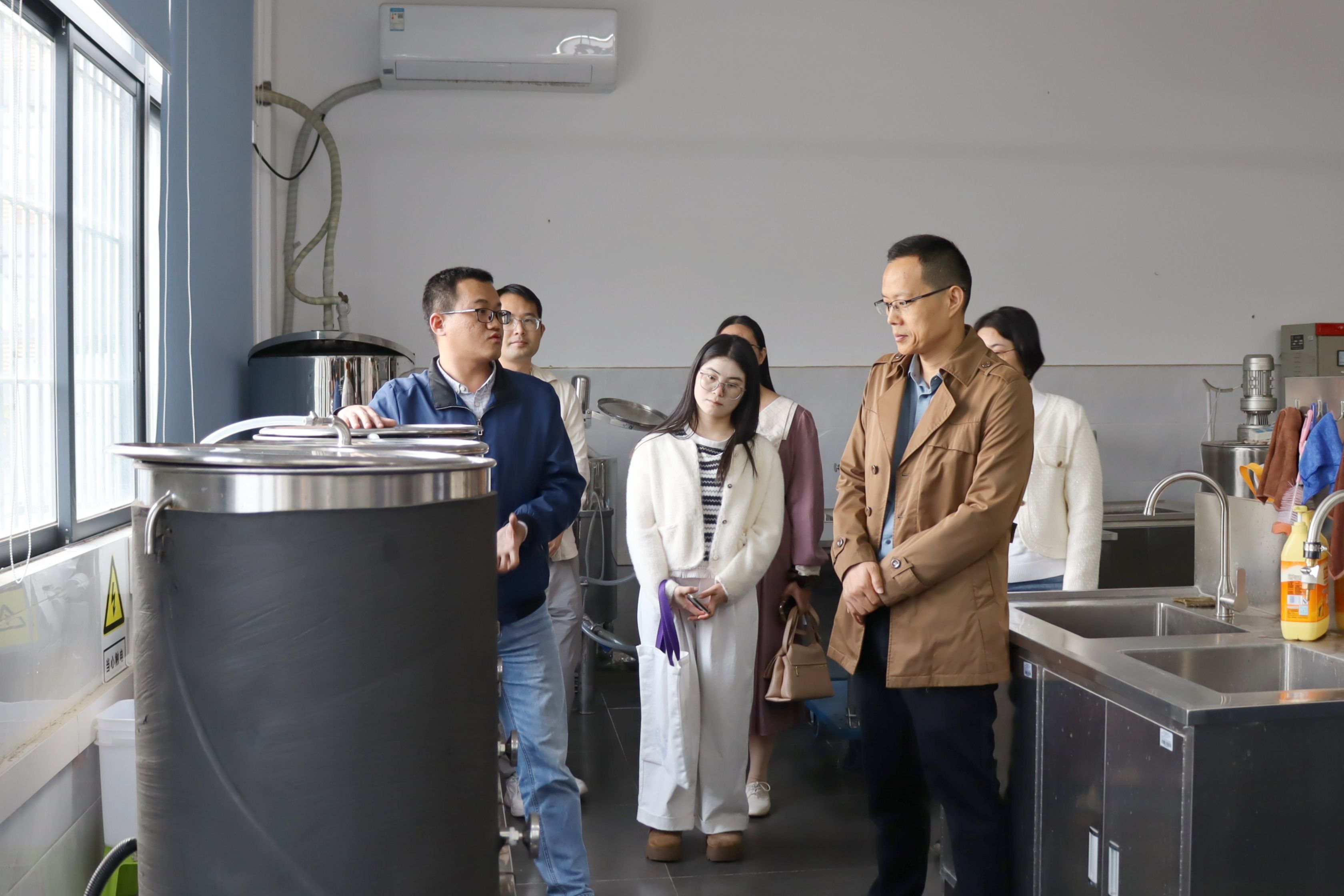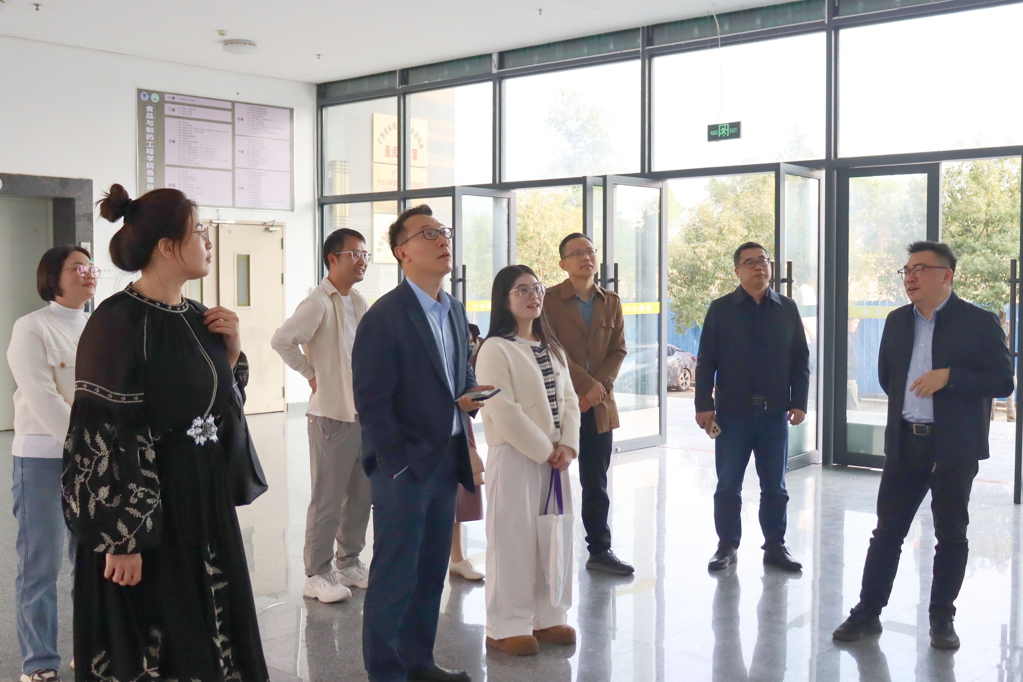 交流伊始,林晓忠书记、刘永副经理陪同王标诗经理一行参观专业发展成果展板,陈子健博士、黄晓辰博士分别介绍了食品质量与安全、营养专业的建设历程,重点展示各专业对接粤港澳大湾区产业需求的实践案例。随后,双方代表走进专业实验室,实地察看实验教学设施与科研平台布局,就仪器配置、实践教学开展等细节交流经验。