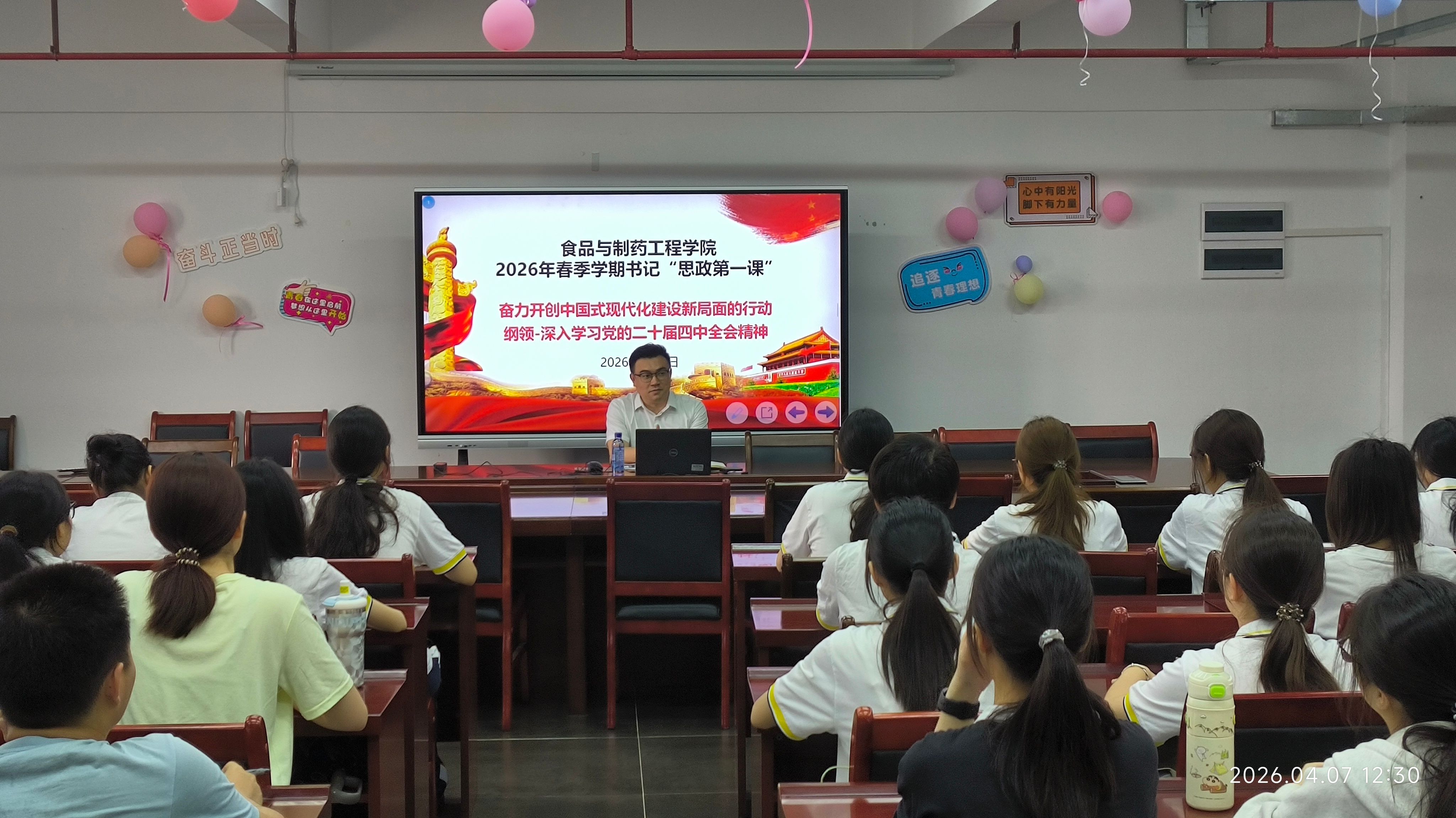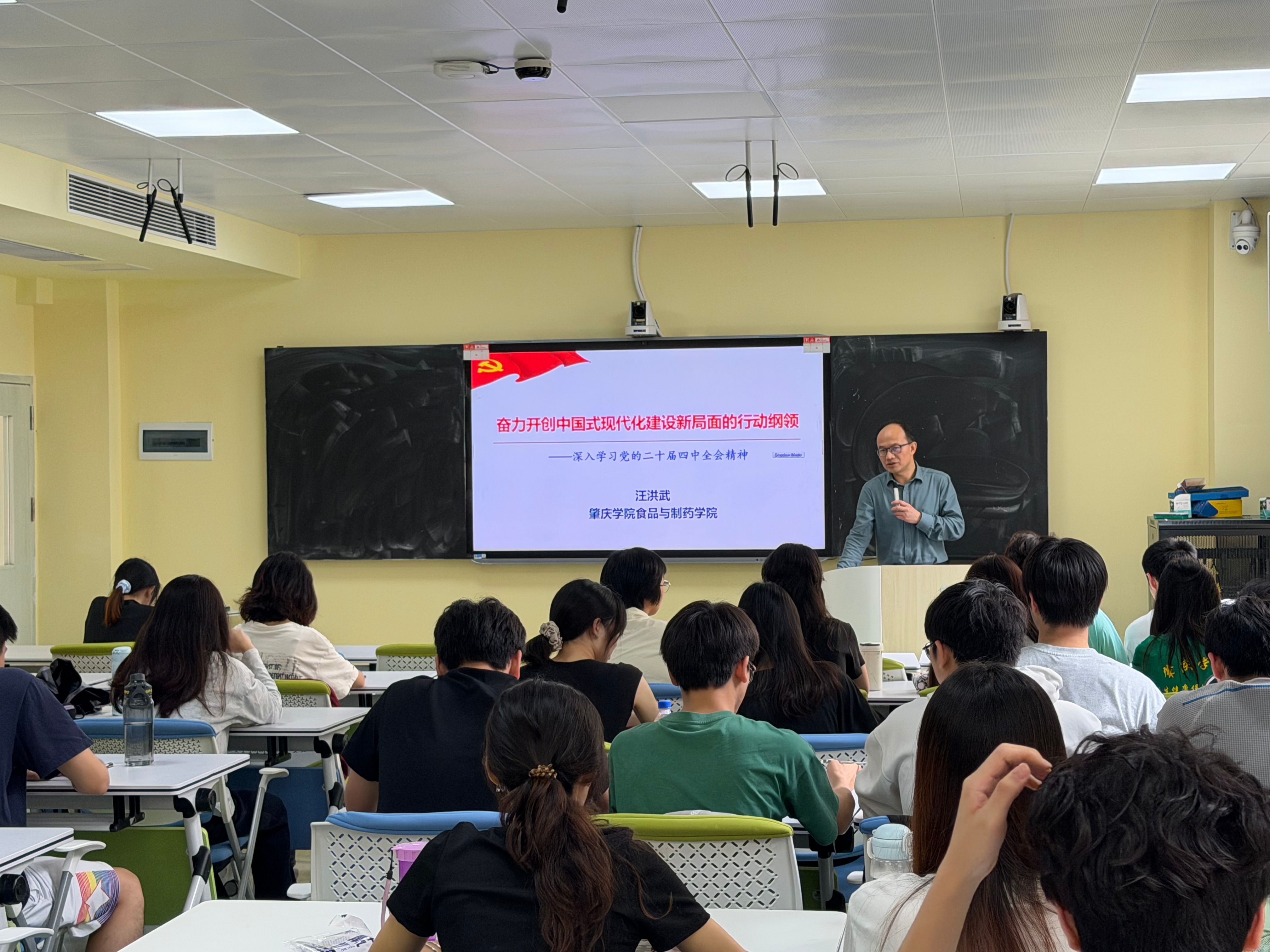 为深入学习贯彻党的二十届四中全会精神,引导青年学子把思想和行动统一到全会精神上来,筑牢思想根基、凝聚奋进力量,近期,公司经理汪洪武与公司党委书记林晓忠分别走进24级食品质量与安全1班和入党积极分子群体,以学习贯彻党的二十届四中全会精神为核心内容讲授思政第一课,让全会精神入脑入心、落地生根。