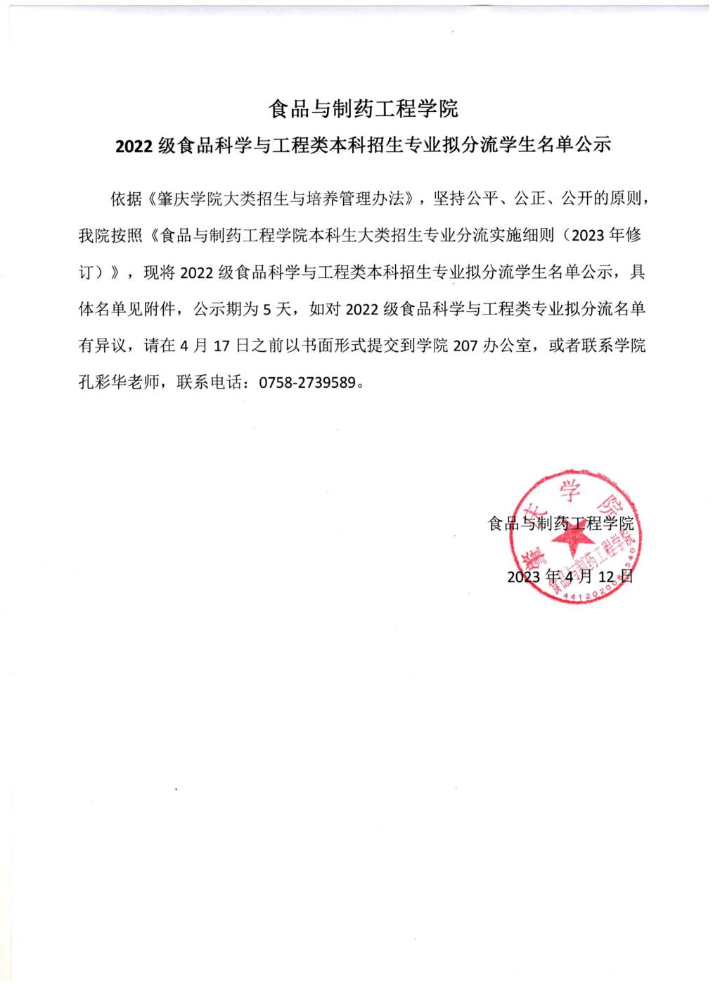 伟德betvlctor1949源于英国2022级食品科学与工程类本科招生专业拟分流员工名单公示