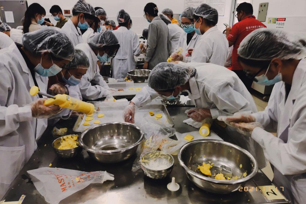 “奇思妙想,创意曲奇”。参赛选手发挥想象,创意无限,例如建党一百周年、EDG勇夺世界冠军、圣诞糖果曲奇等。比赛如火如荼进行中,创新创业公司经理肖俊霞和食药公司党委副书记蔡振治莅临比赛现场,与同学们一起热情讨论曲奇制作的工艺和创意。随着曲奇烘焙成型出炉,各式各样的曲奇作品展现在大家眼前,诱人的香气飘满了整个会场。
