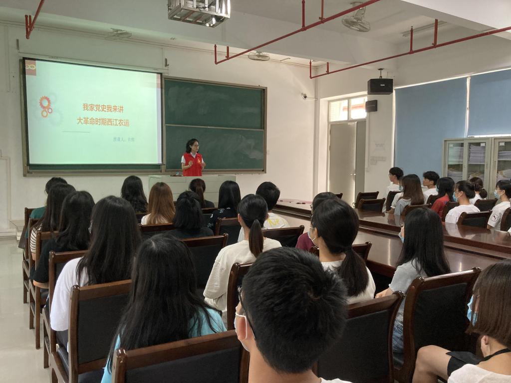 肇庆市博物馆宣教部许辉同志以“我家党史我来讲——大革命时期西江农运”为题,讲述第一次国内革命战争期间的西江党史以及西江儿女的革命事迹,为红色基因和革命精神的传承提供精神食粮,引导师生党员学习革命先辈对党绝对忠诚的崇高品质、坚定不移的理想信念以及勇往无畏的革命精神,从中汲取持续深厚的奋斗之力。